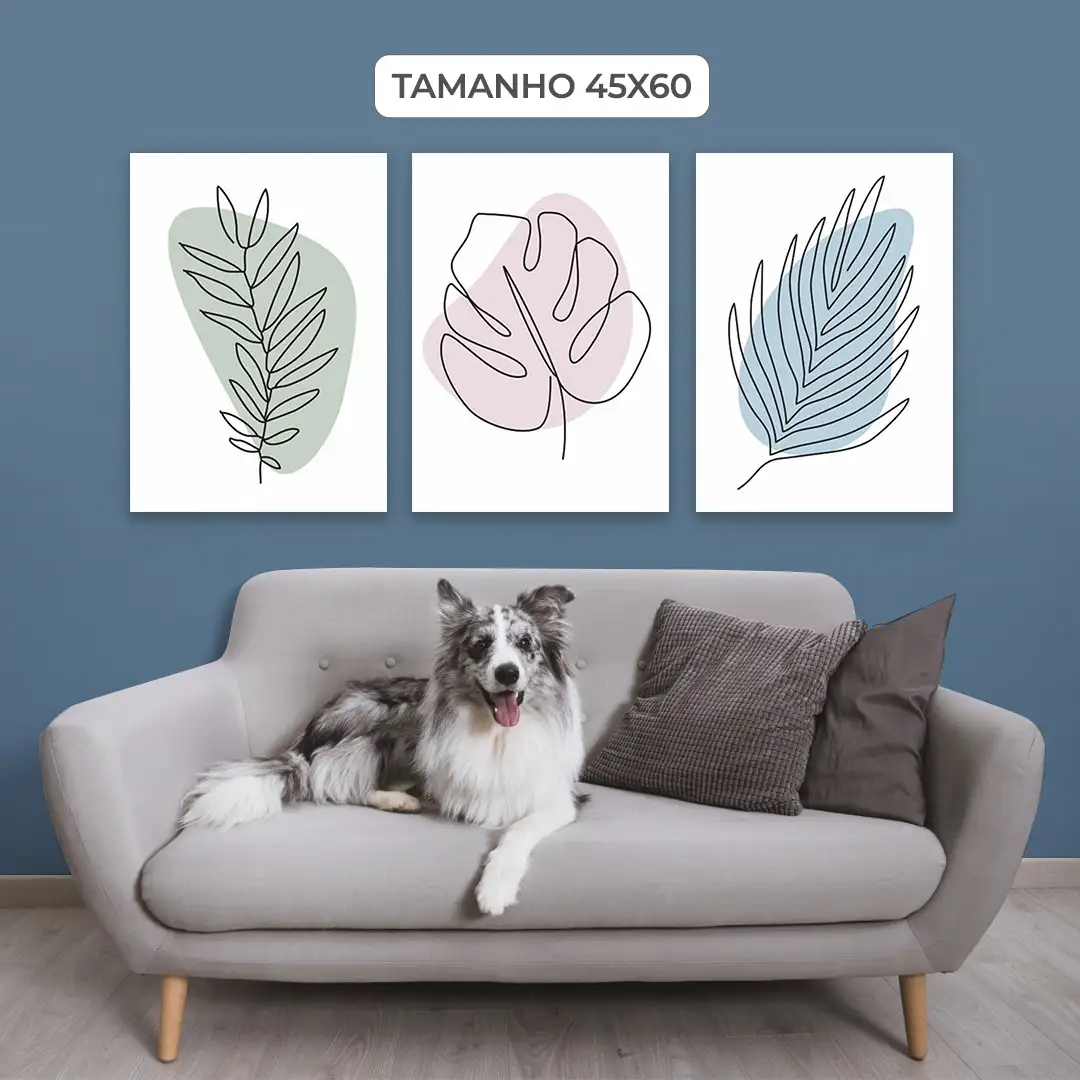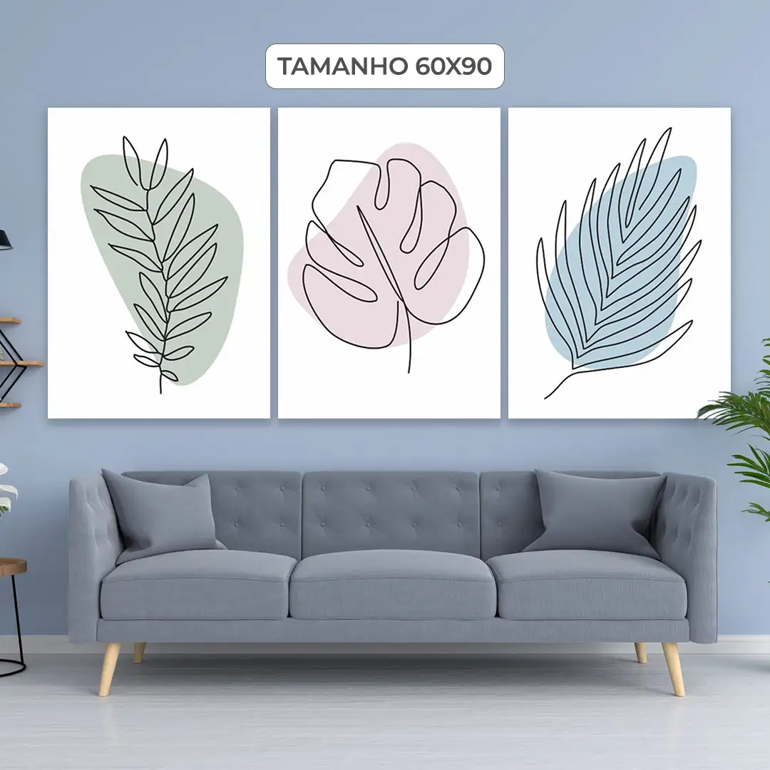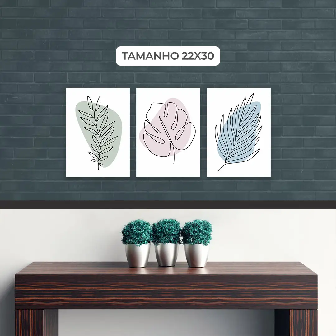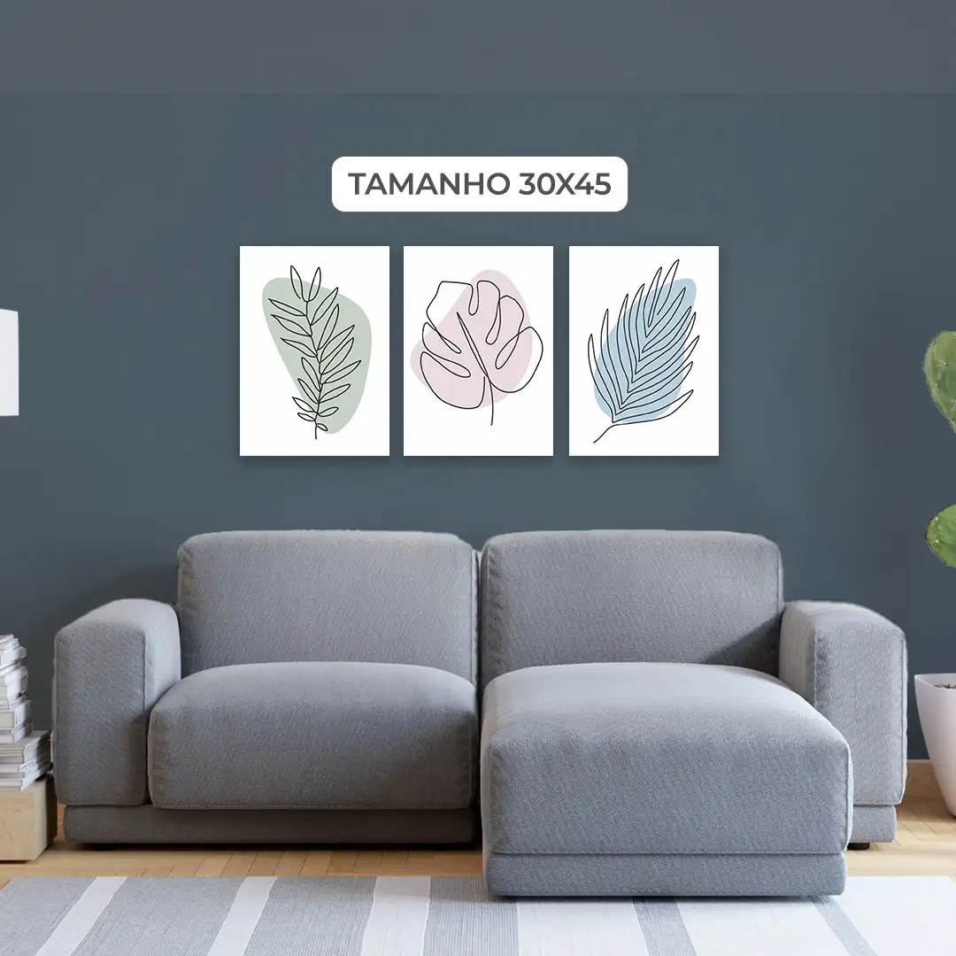 Transforme seu espaço com 3 Quadros Decorativos Folhas Minimalistas! Adicione um toque contemporâneo e sofisticado à sua decoração. Nossas impressões exclusivas de alta qualidade trazem a beleza da natureza para seus ambientes. Escolha a elegância com nossos quadros modernos.