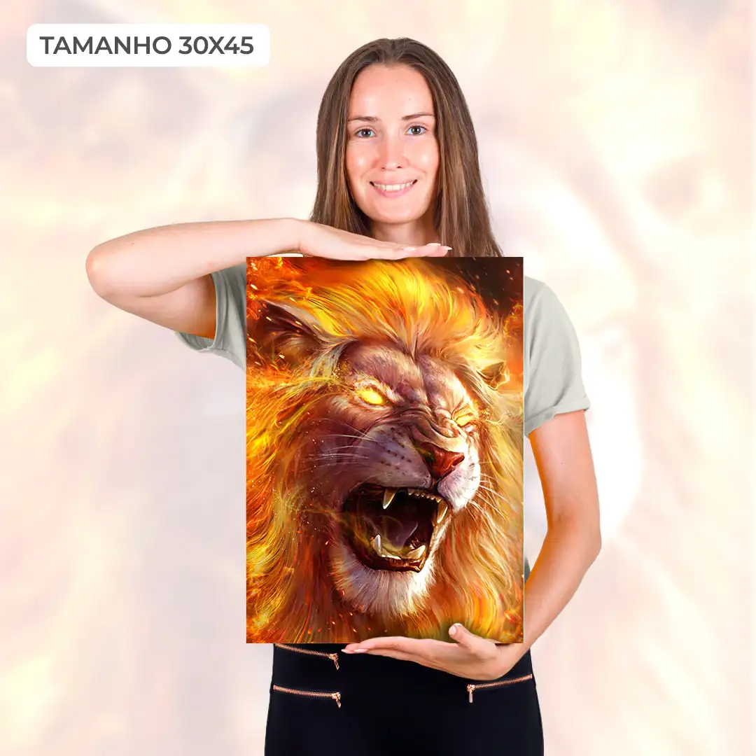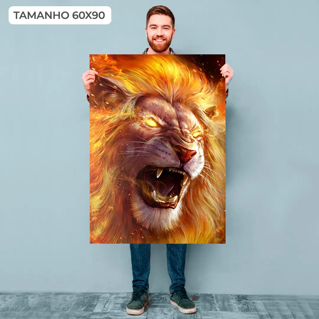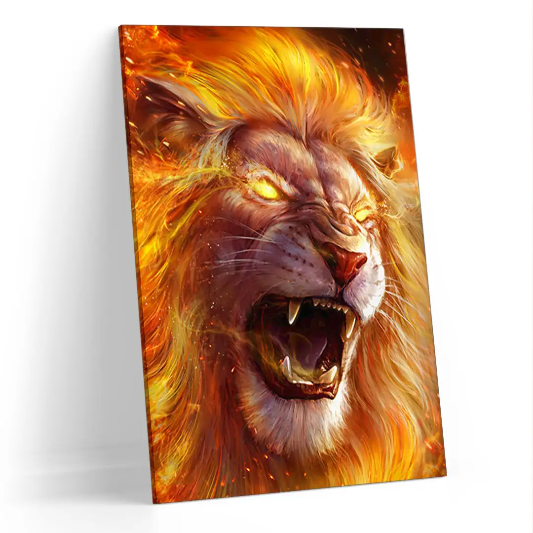 Leão em Chamas: Arte Abstrata Impressa em Alta Qualidade para Decoração de Interiores – Peça Exclusiva para uma Atmosfera Vibrante e Poderosa em sua Casa ou Escritório.