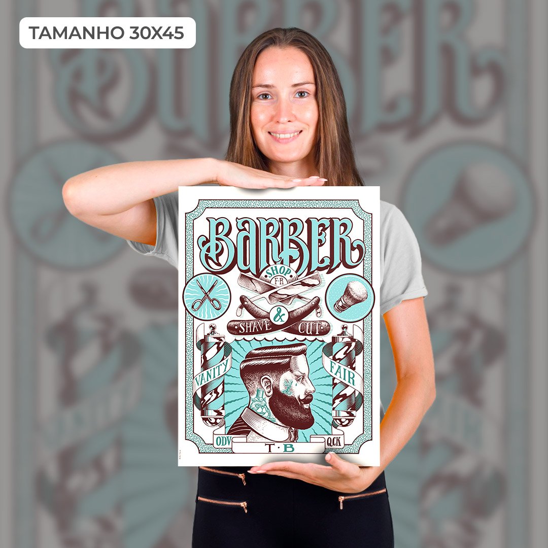 Quadro Decorativo Barbearia 01: Uma Peça Única para um Espaço Excepcional! A imagem vívida e marcante da barbearia é impressa em alta qualidade em materiais duráveis, criando uma obra de arte duradoura que adiciona estilo e personalidade ao ambiente. Adquira já!