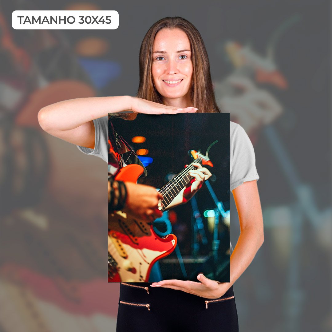 Uma Peça de Arte Única para Amantes da Música! A imagem vibrante da guitarra é impressa em alta qualidade em materiais duráveis, criando uma obra de arte duradoura que traz harmonia e vida a qualquer ambiente. Adquira agora e transforme seu espaço com essa incrível representação da paixão pela música!