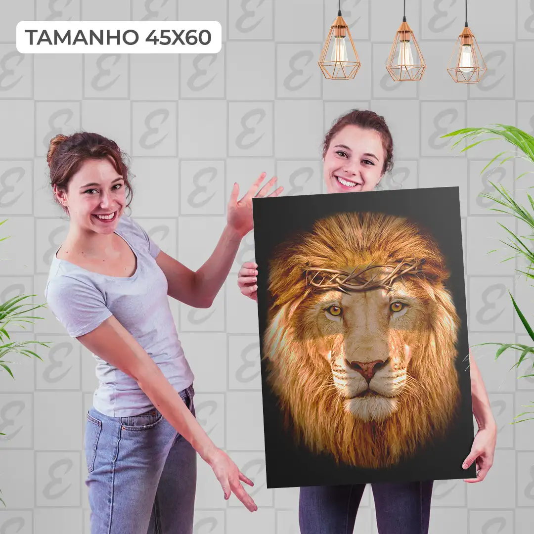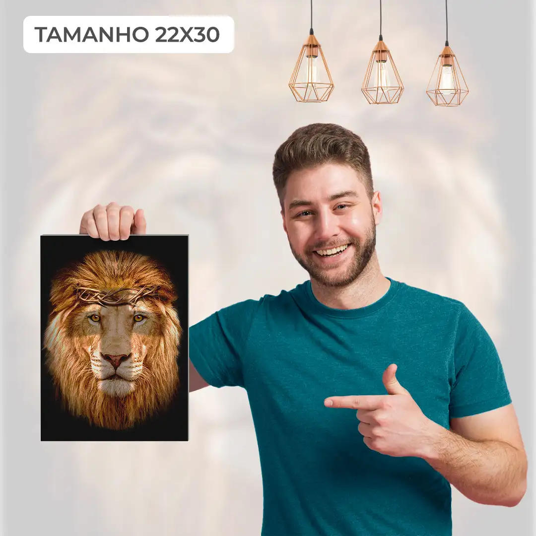 Quadro Decorativo Leão Coroa de Espinhos: Majestade e Força em uma Obra de Arte Única! Esta peça exibe a imponência do leão com uma coroa de espinhos, simbolizando poder e bravura. Impresso em alta qualidade, este quadro é feito para impressionar, adicionando uma aura de nobreza ao seu espaço. Adquira já e celebre a grandiosidade da natureza selvagem!