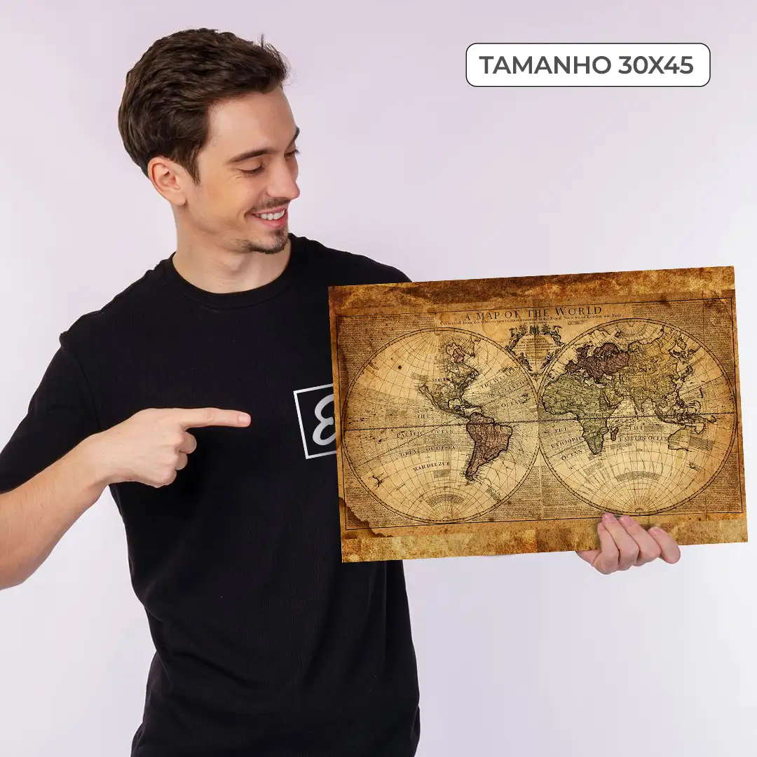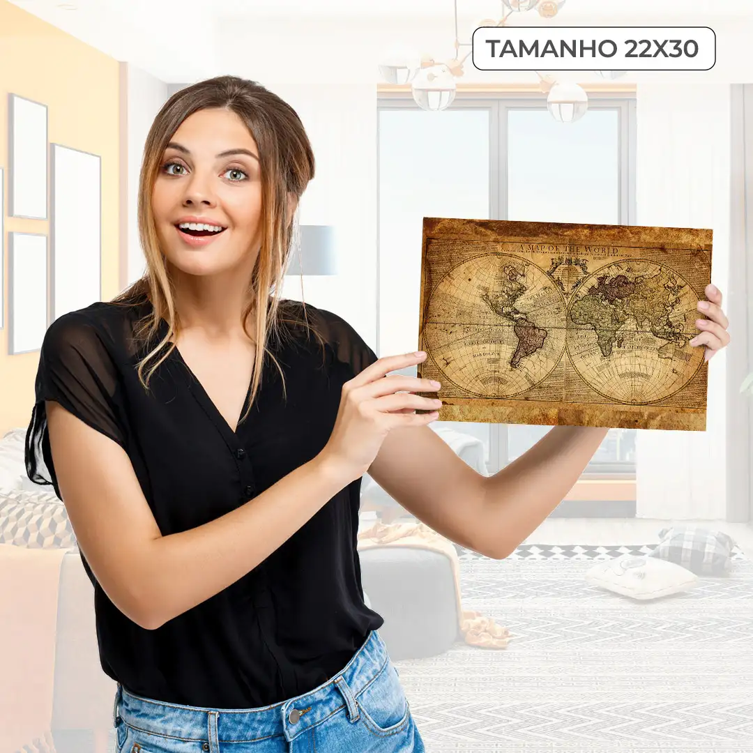 Quadro Decorativo Mapa Mundi 01 – Adorne sua Parede com um Elegante Mapa Mundi em Tamanho Personalizável para uma Decoração Exclusiva e Sofisticada.