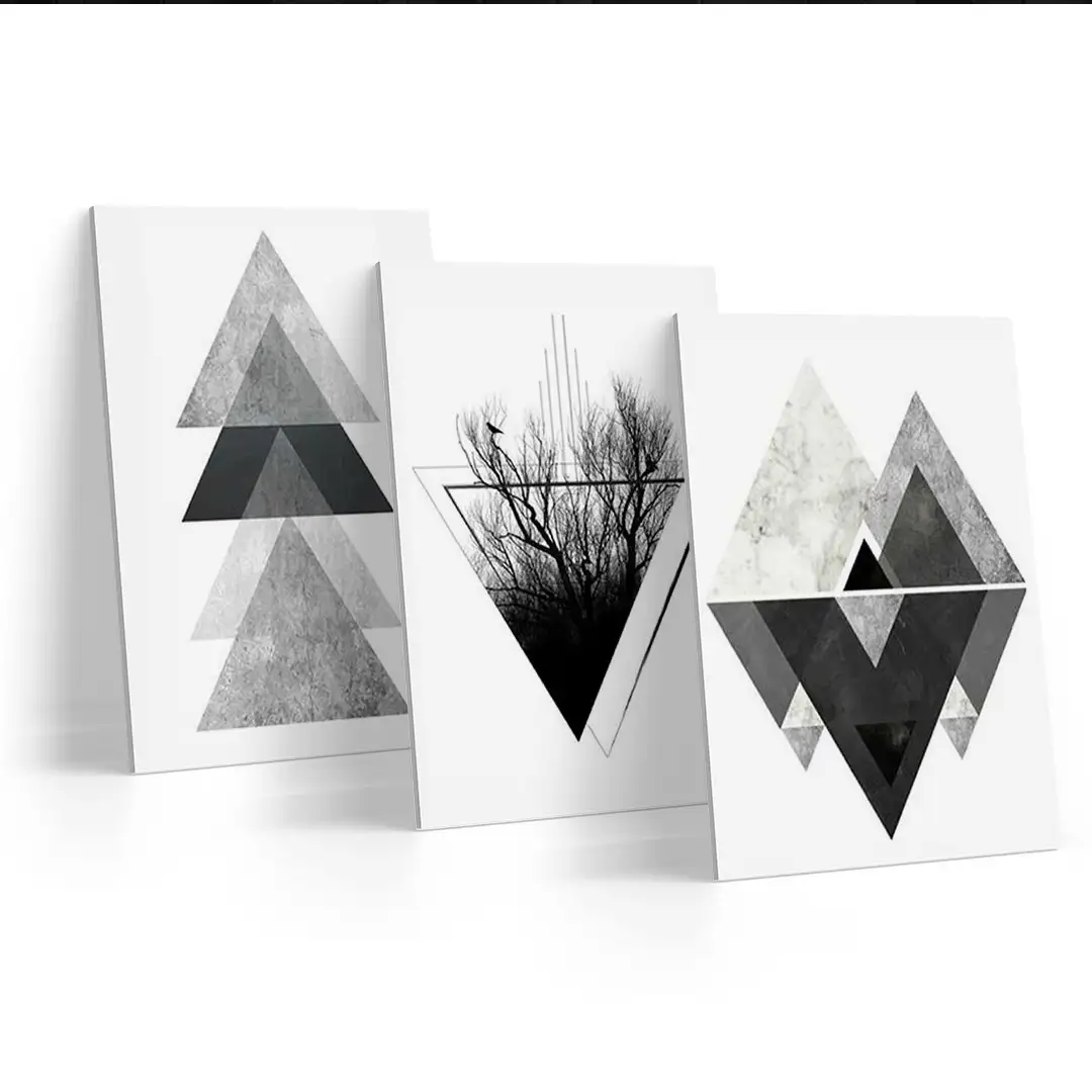 Transforme seu espaço com o Trio Quadros Decorativos Geométricos 02. Impressos em alta qualidade, essas peças contemporâneas elevam sua decoração. Adicione estilo único à sua casa!